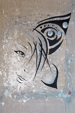 Je vous présente ici mes travaux de calligraphie et sumi-e sur toile. Pourquoi mixte? Tout simplement parce que travaille à l'encre de chine sur une toile de lin que j'apprête avec du liant acrylique et pigments.